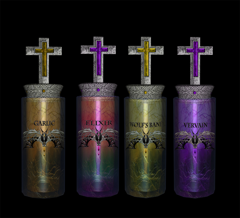 I'm nearly done with the kit textures. Hashing out some elixir bottles and then I need to map the garlic bulbs. A few more tweaks.