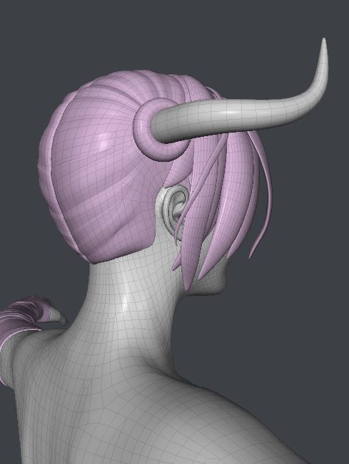 I understand that friend but i thought the hair was placed with horns to see how they would work together so the hair can be tweaked.