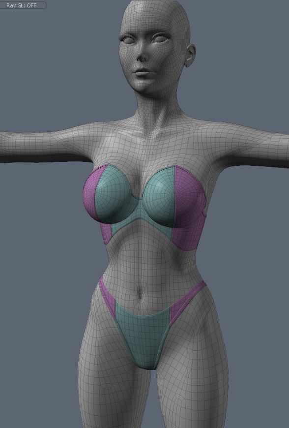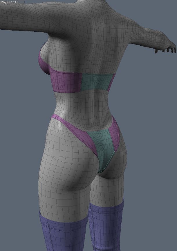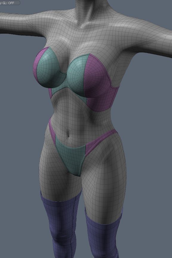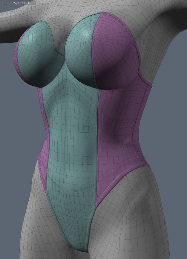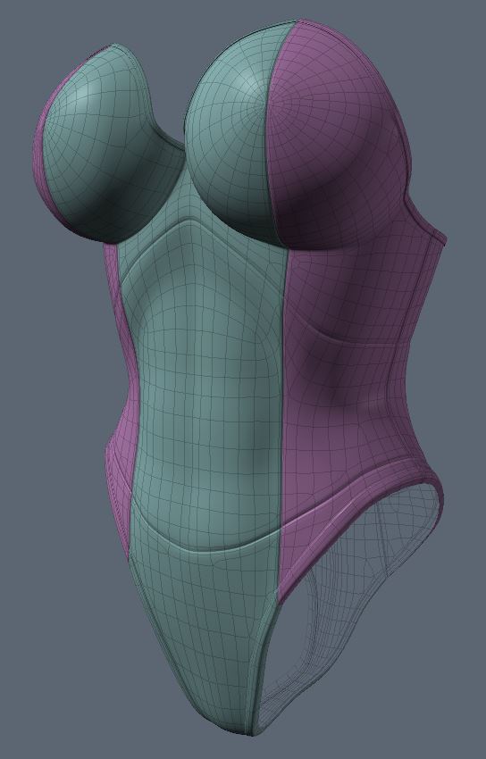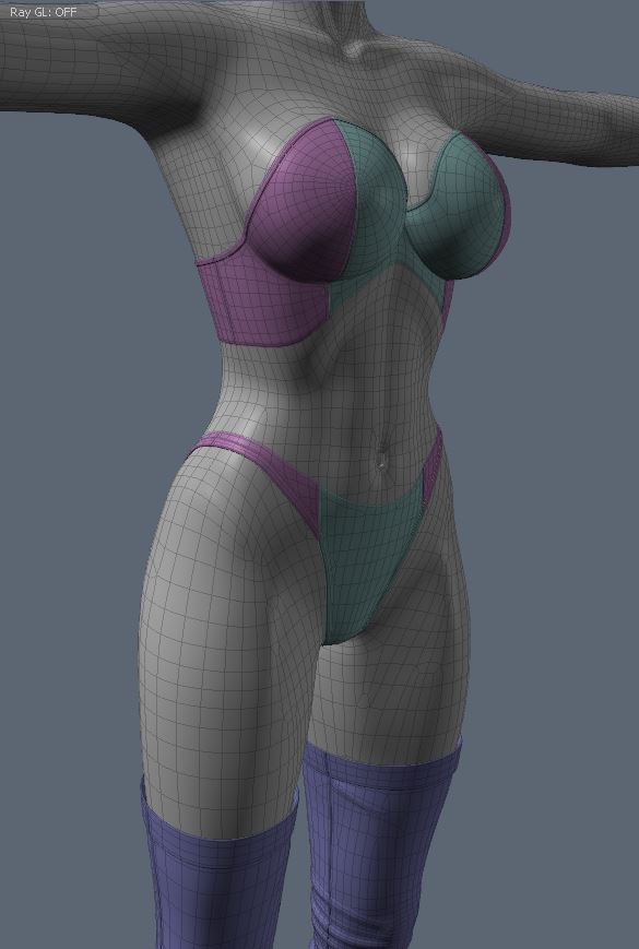 Here's today's work. Cut up the body suit to be able to add in morphs for removing the midsection and still have a rolled over edge to the groups that still show.