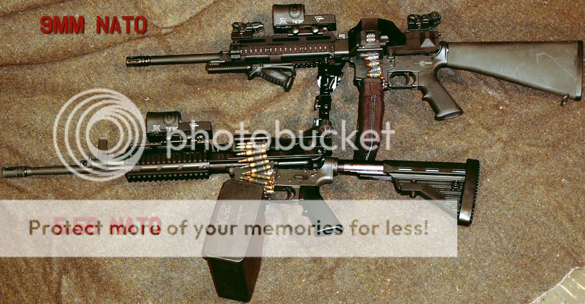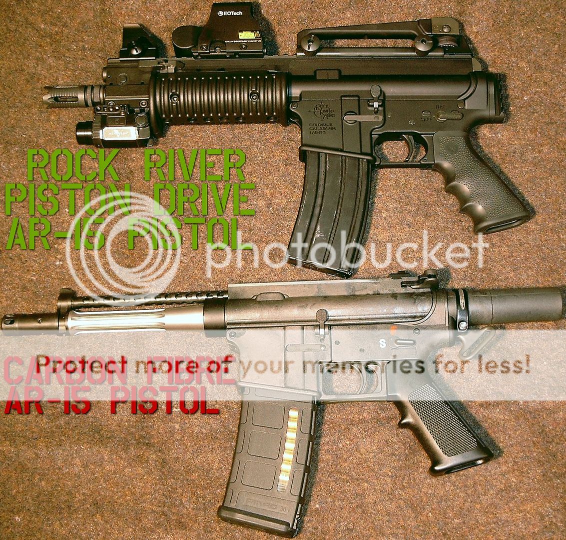 The top pistol uses a gas piston system akin to the AK47, eliminating the need for a buffer tube sticking out the back. Nice short weapon.