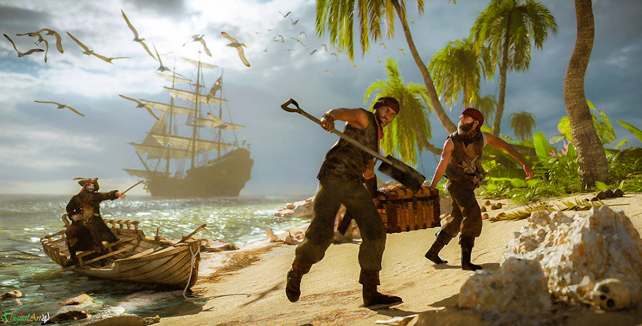 Cool Dan! Your work is always amazing! I like the "warm" one best- for some reason it makes me think of gold bullion with that coloring and since we are dealing with pirates it makes sense to me:) Also it seems to add more drama too - I think in part because it highlights the shadowed areas better so one can see their expressions more readily and hence one feels the story more.