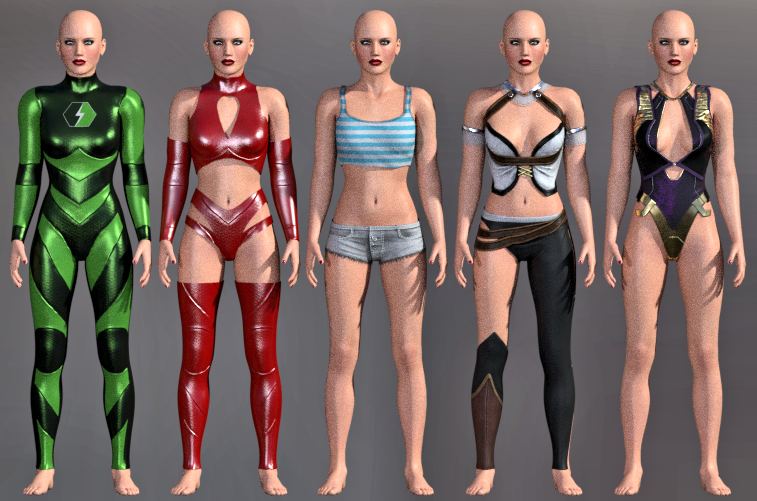 What about my Superhero catsuit for Dawn? It has the best topology I have ever made for Dawn (all-quads!), and has plenty of options for texturing. It's Poser-only, but I was told it works well with Auto-fit in DS. It supports all of Dawn's official body morphs. It ships with gloves, boots, belt, cape, morphing cowl, and 2 masks that support all of Dawn's official facial morphs. With textures and transparency maps, you can turn it into anything.