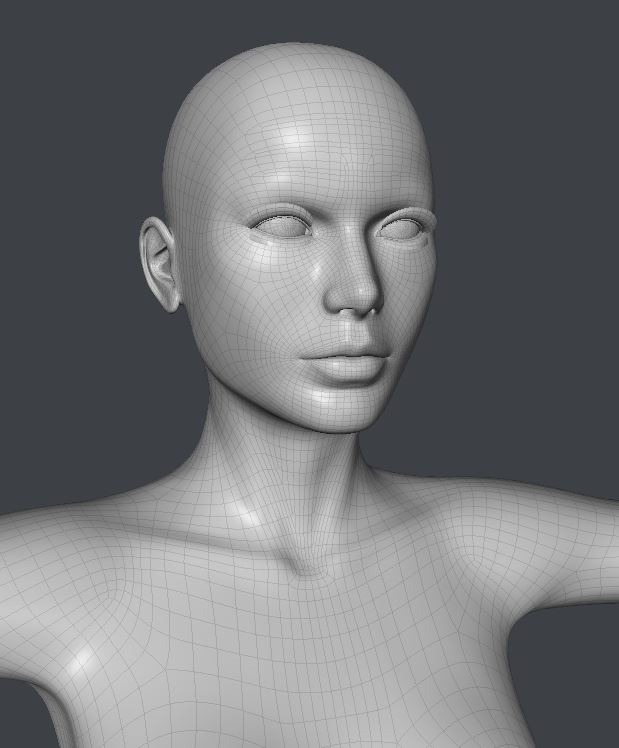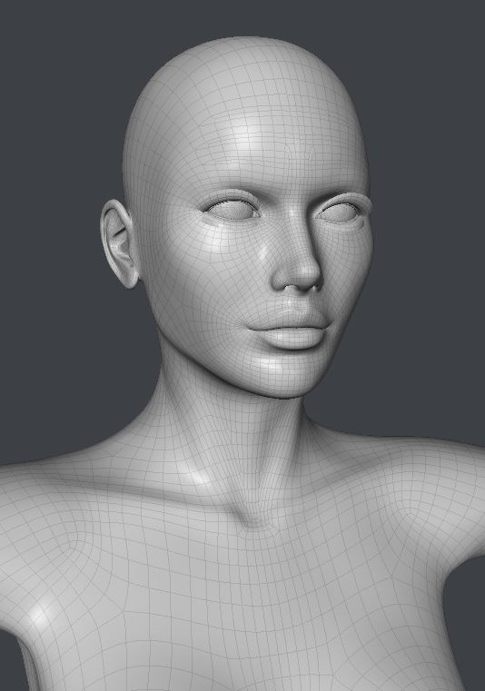 That _all_ said, the two independent figures I saw people get excited about and support most in the pre-Genesis era were Sara and Miki. For Miki, she was just _hugely_ more realistic. Sara was just unique in her look and style, even as one a few different GIRL derivatives. And after that, I'd say the notable 3rd party figures were Rikishi and Nursoda's distinctive figures. I think what really makes a figure attractive is a _unique_ visual quality or feature. Since you want Dawn to be a versatile human base for other artists, this is my suggestion: put as much work into the realism and versatility of her eyes and nose as you do into her body below the neck altogether. The absolute key to capturing a likeness is in the eyes and nose. IMHO, what makes so many figures look toony even with realistic shaders and textures is a) problems with eyelid thickness, b) eye structure that prevents realistic materials (basic SSS, refracting, and reflecting shading) from working properly, and c) noses with nostrils that end with the face instead of having a tiny bit of a raise up from the face. Also, eyelid thickness varies with age, so I'd _really_ suggest adding that as a basic morph. Also, make sure it's easy to make an orbital region that isn't so soft. You see how in that 3/4 view, she doesn't have a distinct dip from her brow to her eye? Lots of portraits of people in general, and famous models specifically, have one, and I've found it _really_ hard to hit the sweet spot of realistic definition that isn't overboard. But I've needed to, because pretty much every figure since V4 has had an uncommonly soft and undefined brow.