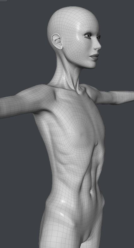 I know I said Jaw line earlier, and I'll get there. But this sounded fun to dive into for now. Our Emaciated body morph. Nothing on the head for this part. I've worked over the neck, shoulders, torso, and starting on the hips.