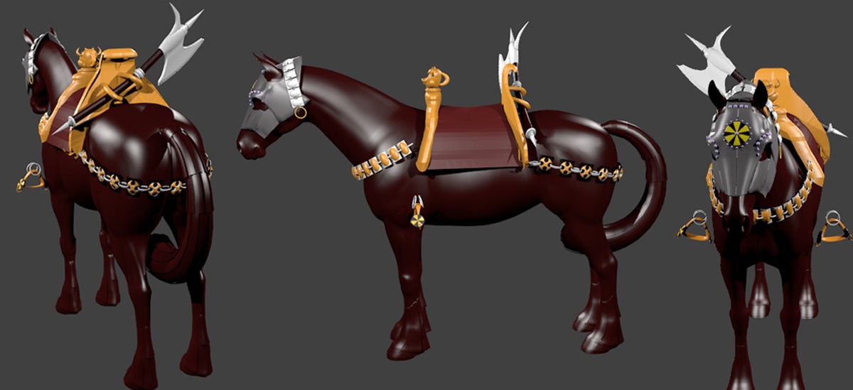 Nice, and being familiar with the reference image would hope this gets completed and made available.......someday!I have been working on a set of trappings based on a Frazetta painting, and boy do I sympathize with you there!!!