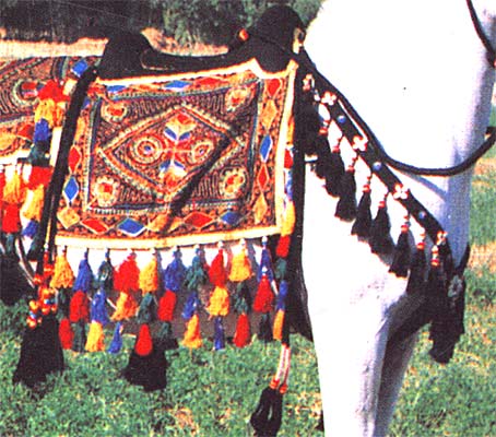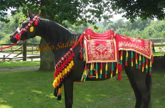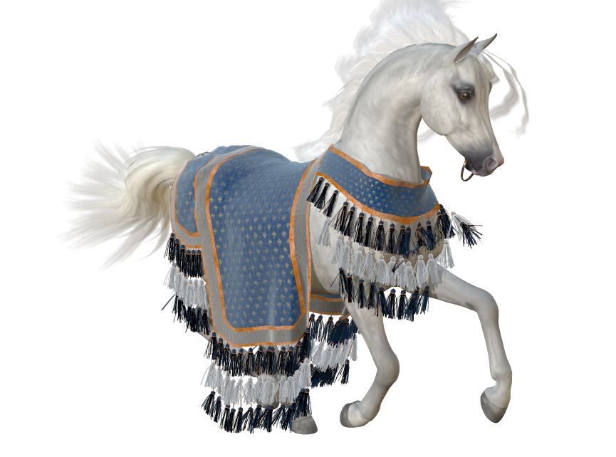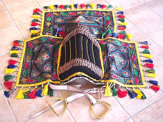 Lovely reference images but also great ideas for Poser stuff renders.Looking at this: ArabHorseStore.com the saddle is part of the blanket (the blanket part is over the stirrups and girth etc except the saddle seat). Others I found for modern showing just have the blanket go over the saddle with cutout for the stirrups (see last image) or are like a modern saddle but fabric instead of leather (I couldn't tell if the fabric was covering leather or not, see image 2 & 3).