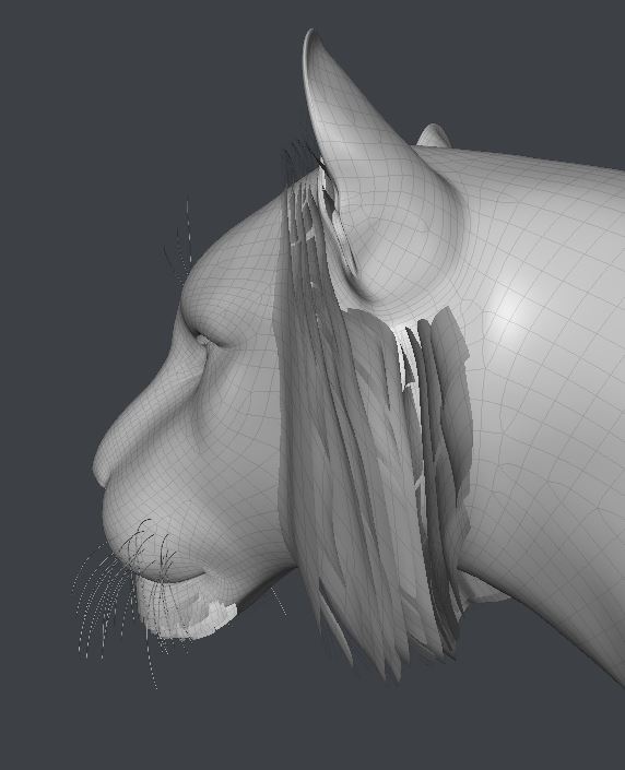 Laurie has created an impressive Lion mane for Poser using Poser. She may have abandoned it due to the fact that our base mane modeled with sheets or strips turned out so well.