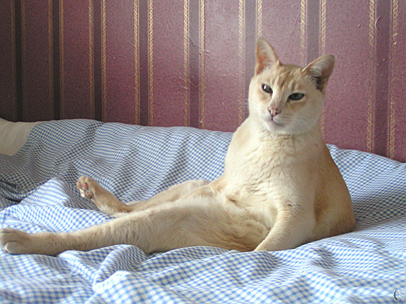 I recognize the "I'm in the middle of a bath and you, mortal, have disturbed me" look well.Here's a cat pose you might like