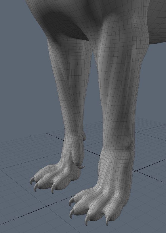 Okay, Chris, don't hate me, but personally, I think the dragon feet should be more talon-like for ripping, gripping and perching. Of course that would probably make more sense in a mountainous terrain. Otherwise, the ones you have do work well. A morph might work, but there might also be some issues that require extra rigging.Here's the feet I'd like to go with. I think it's a good mix from this Big Cat mesh.