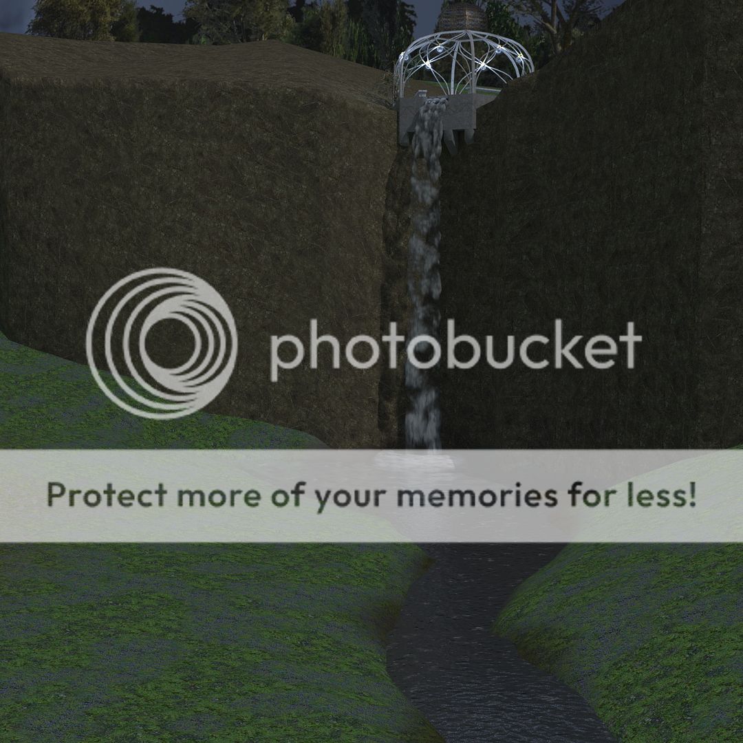Superfly test render of the waterfall with the gazebo atop: