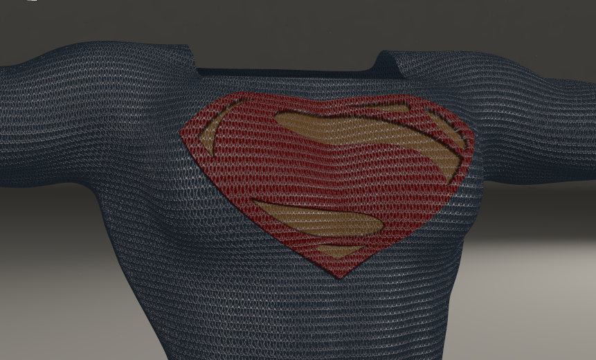 A closeup to see the detail of the displacement for the emblem and a good look at the Kryptonian texture on the suit. Again, this is Firefly.
