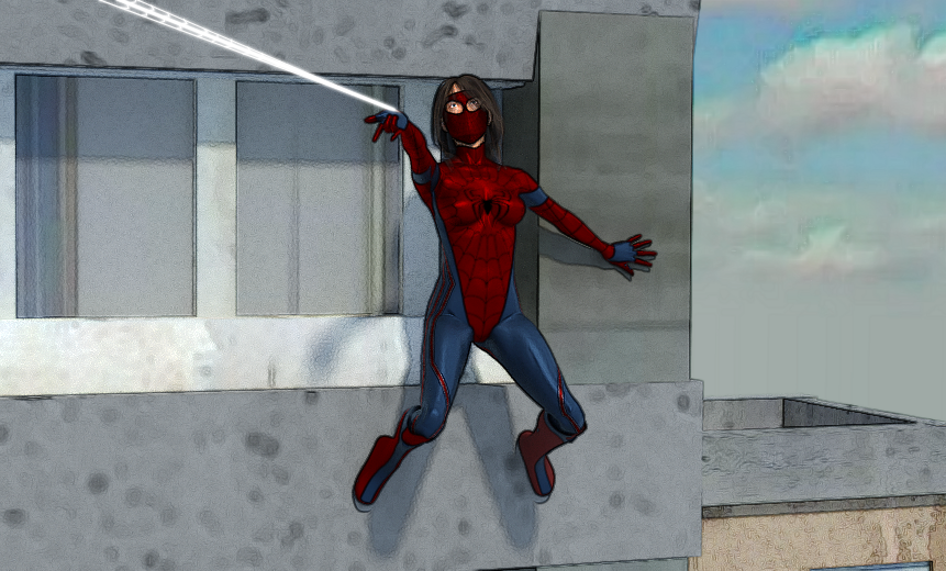 In keeping with the spirit of the thread... My Sydney Spider Girl in my comic style. The boots and mask are modeled, the body suit is second skin. The webbing is done in GIMP in post.