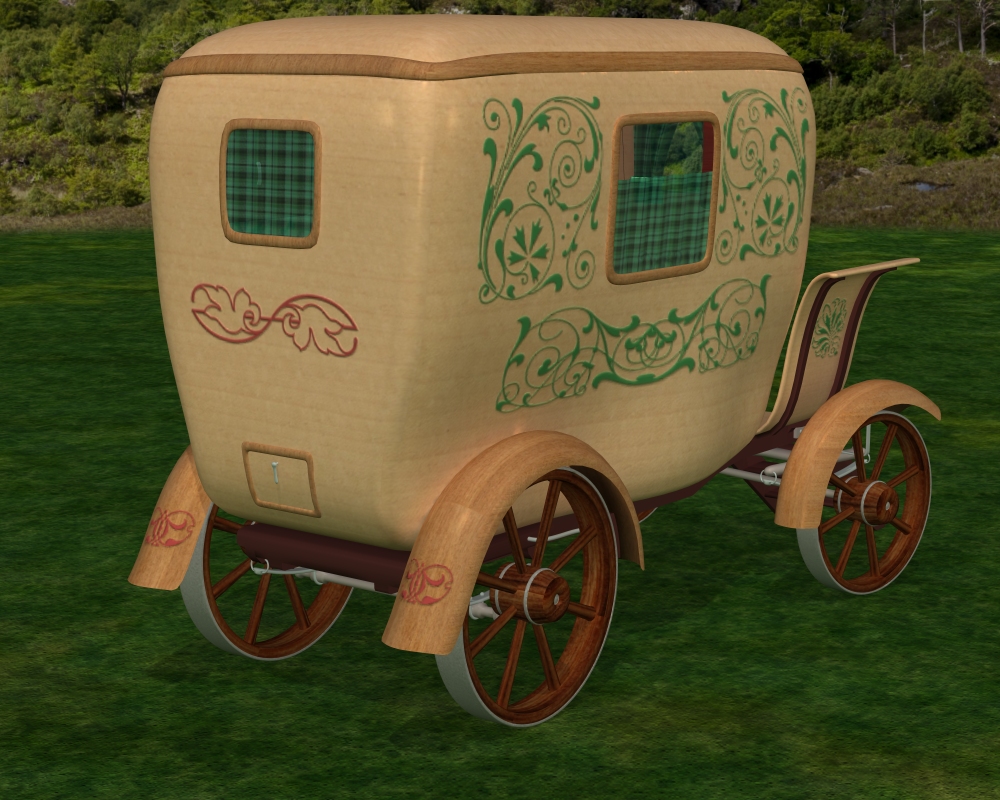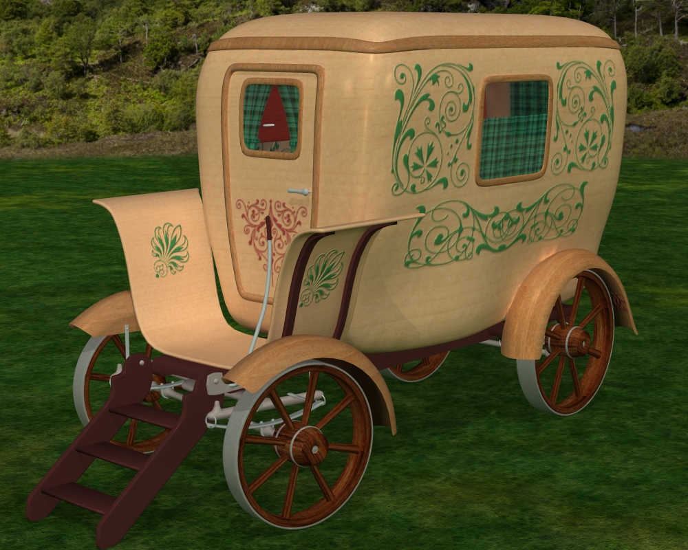 Check out Riverthorn's Gypsy Wagon sold here. It includes a harness for the HiveWire Horse.