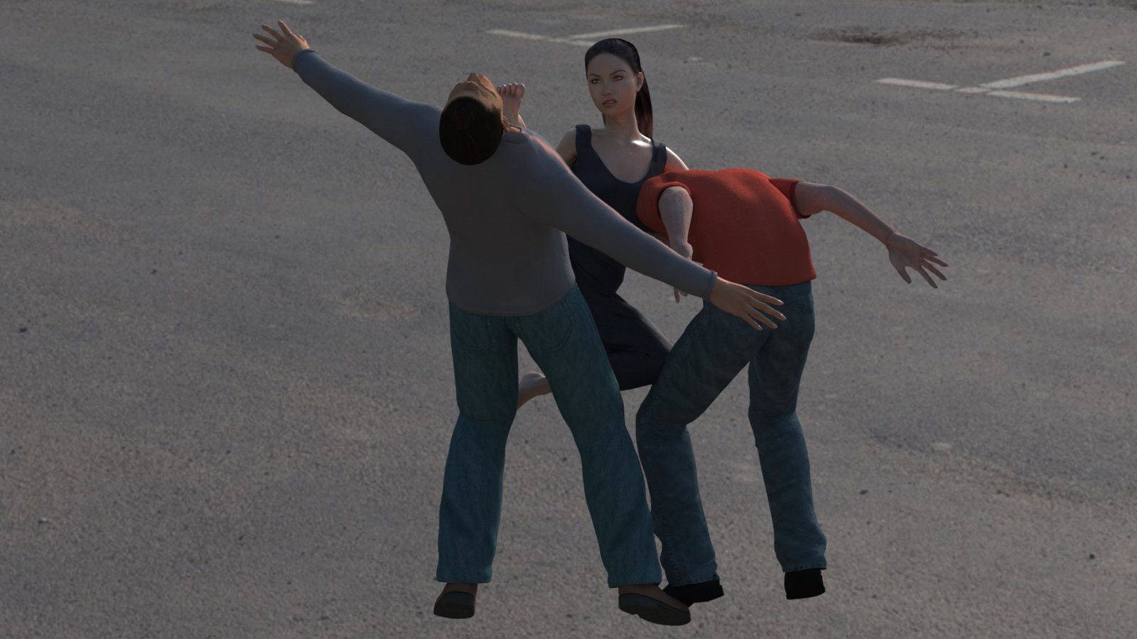 There is more violence in a Tom and Jerry cartoon than what is portrayed here. Posing for action isn't easy, is time consuming but you can really see the style of the artist because you must portray motion as well as a static moment in time. Especially if it is part of a storyboard or a comic page sequence.View attachment 35311 I wanted to see how this would turn out, and rendered it several different times changing the camera angle each time. This is the one I settled on. If this violates TOS, please delete it.