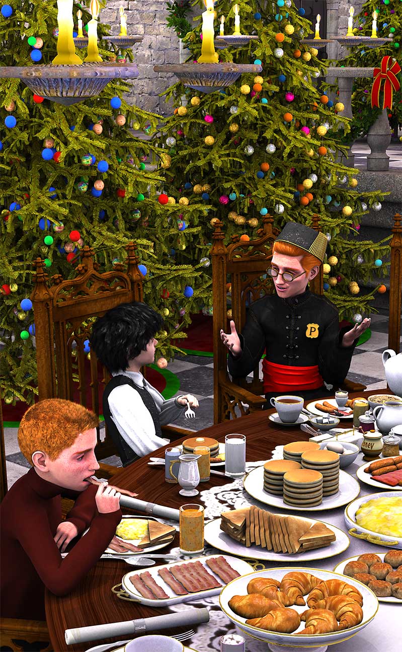 Christmas Break, Breakfast with Weasleys. In 2011 and 220.
