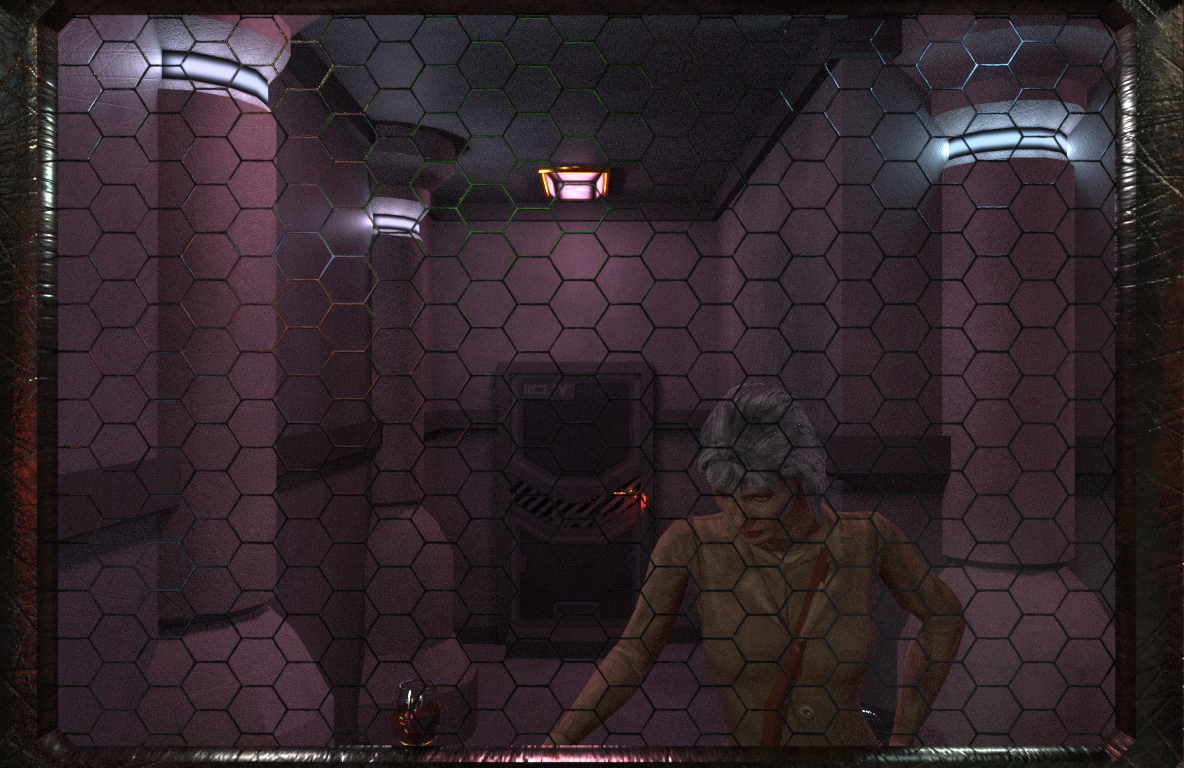 A quick n dirty render with a cyberpunk vibe featureing Afrodite-Ahki debute to Daz Studio with her Adedayo Hair.