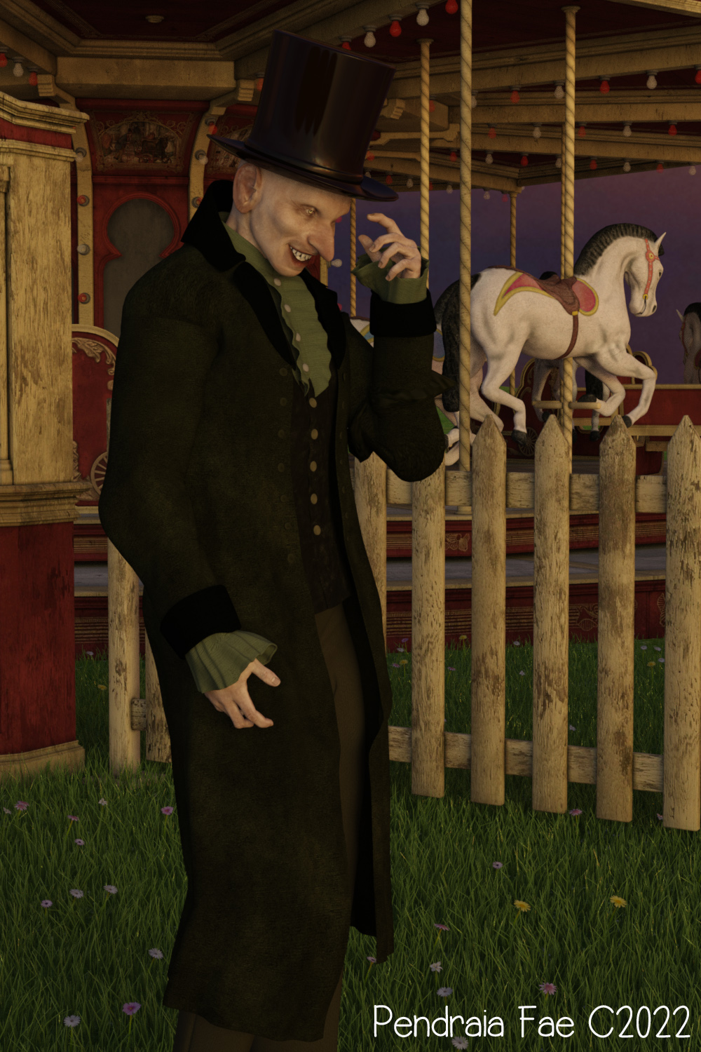 Grim wearing M4's regency outfit and carousel from the carnival series from Daz. I went looking for the Big tent as somehow I missed buying it it's amazing what the price is for it now.