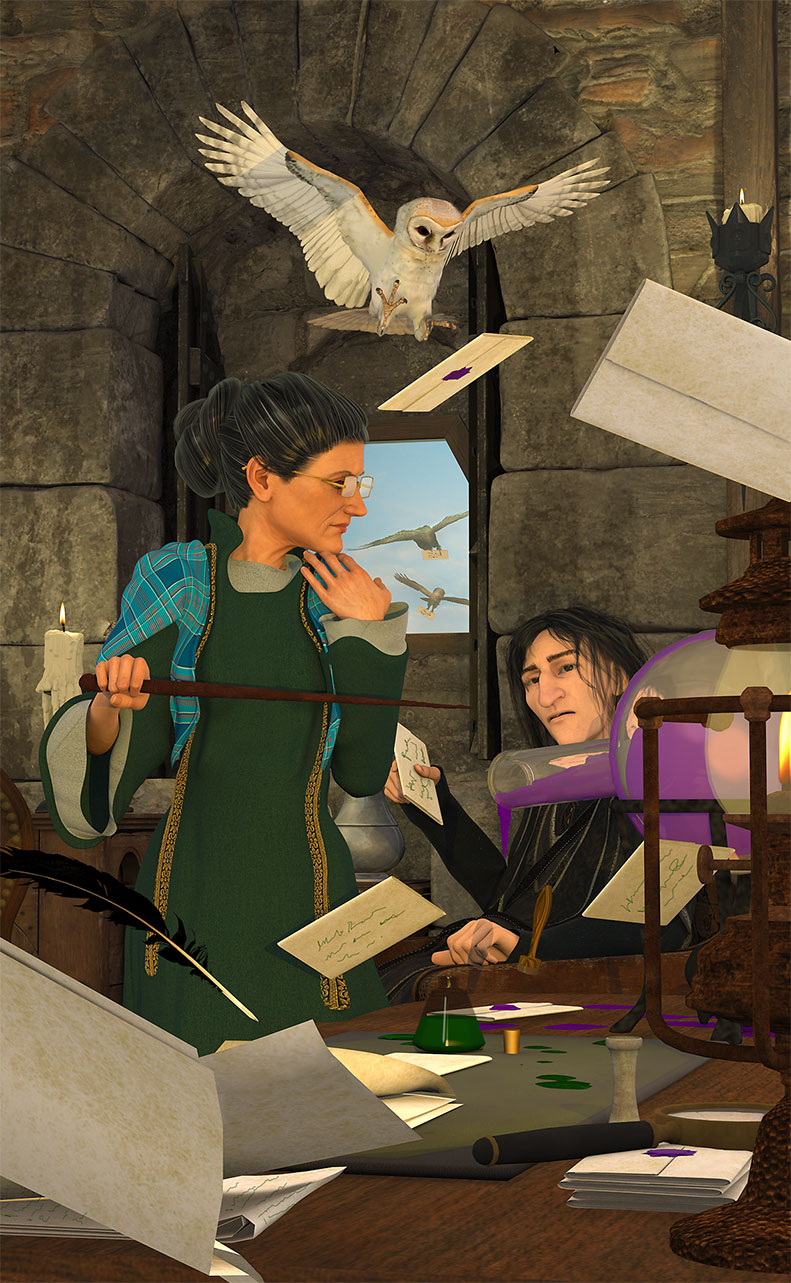 Snape and Minerva and the Hogwarts letters. (The 2011 version used Noggins's owls. They weren't altogether bad, but Kens are much better.)