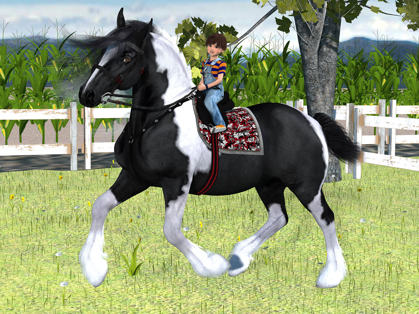 Really cute render!! =) The Gypsy Vanner should be out soon. I'm not sure around the world, but in the U.S. there is a trend at horse shows with the mini variety 13 hands and under as well as the 36 inch super mini and it will have this morph as well in the package. I just got finished today doing the Western tack fits and a little bit of info in the Readme file on that, but nothing too major!I'm so happy, I got the racehorse tack to fit the draft horse!! Thanks to @NapalmArsenal 's Growing Up Thoroughbred tutorial, I use Poser and I didn't have any problem at all! SO happy! I'm only using the bridle in this render, but I'm sooo happy!