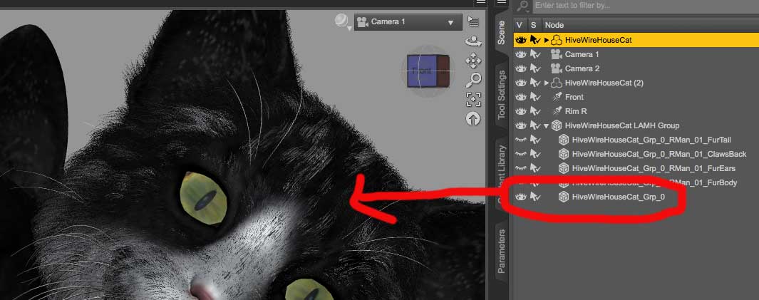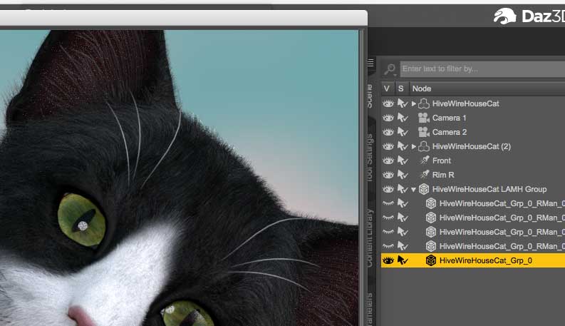 Then I deselect the "Rmans" in the LAMH group so they are hidden since I don't need them in an iray render/they don't work in an iray render anyway. One I've done that I get this:
