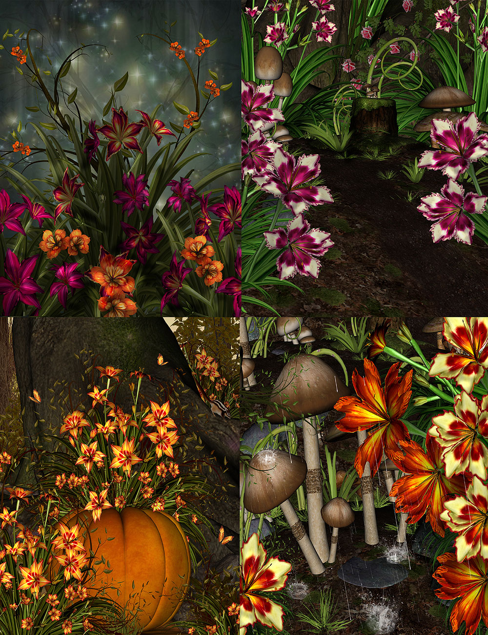 The set also includes 22 background images for all your fairy environment render needs. Mix and match the textures with the Dance of the Flowers and Regalia texture sets.