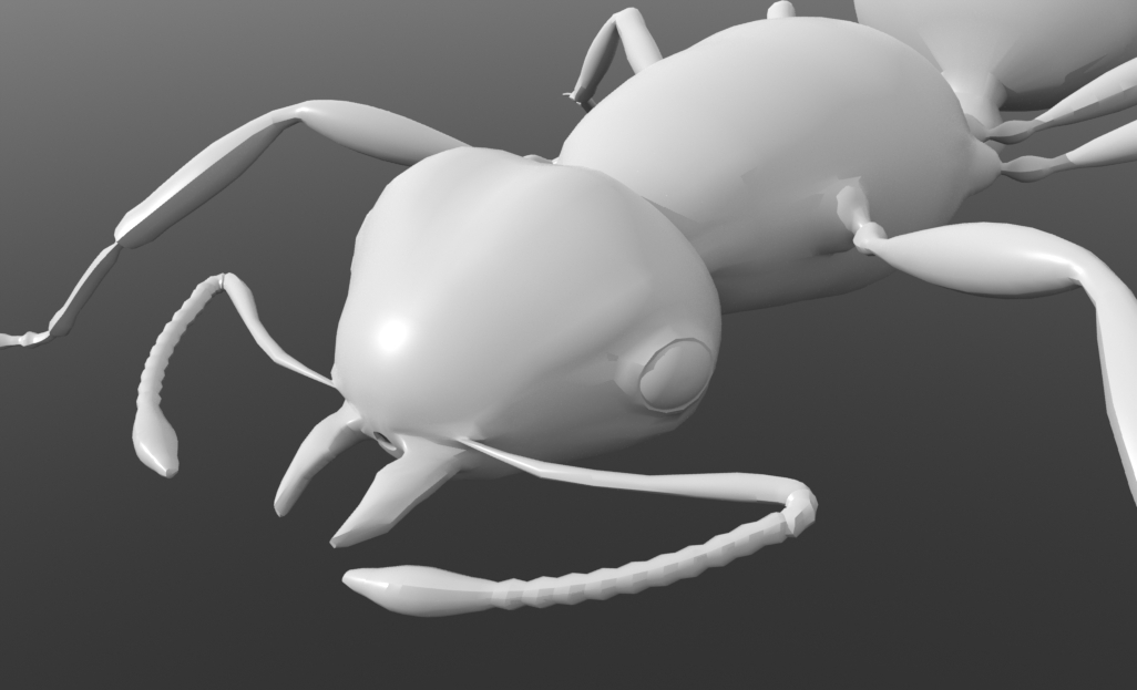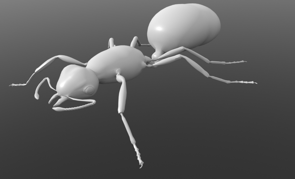 I think I've finished the modeling part (and almost the UVing). Next, will be chopping up the model into body parts and rigging. There will be quite a few morphs since the head, thorax, abdomen and mandible shapes vary quite a bit from species to species.