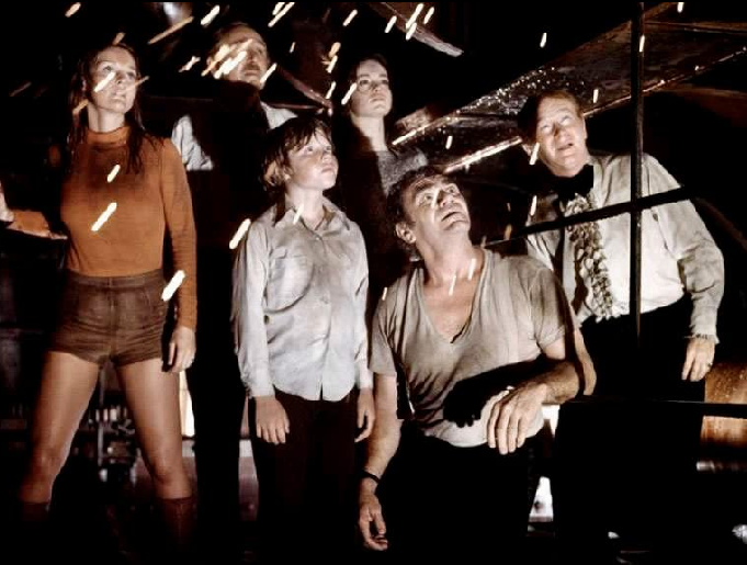 I'm thinking the Poseidon Adventure.An Overturned ship.