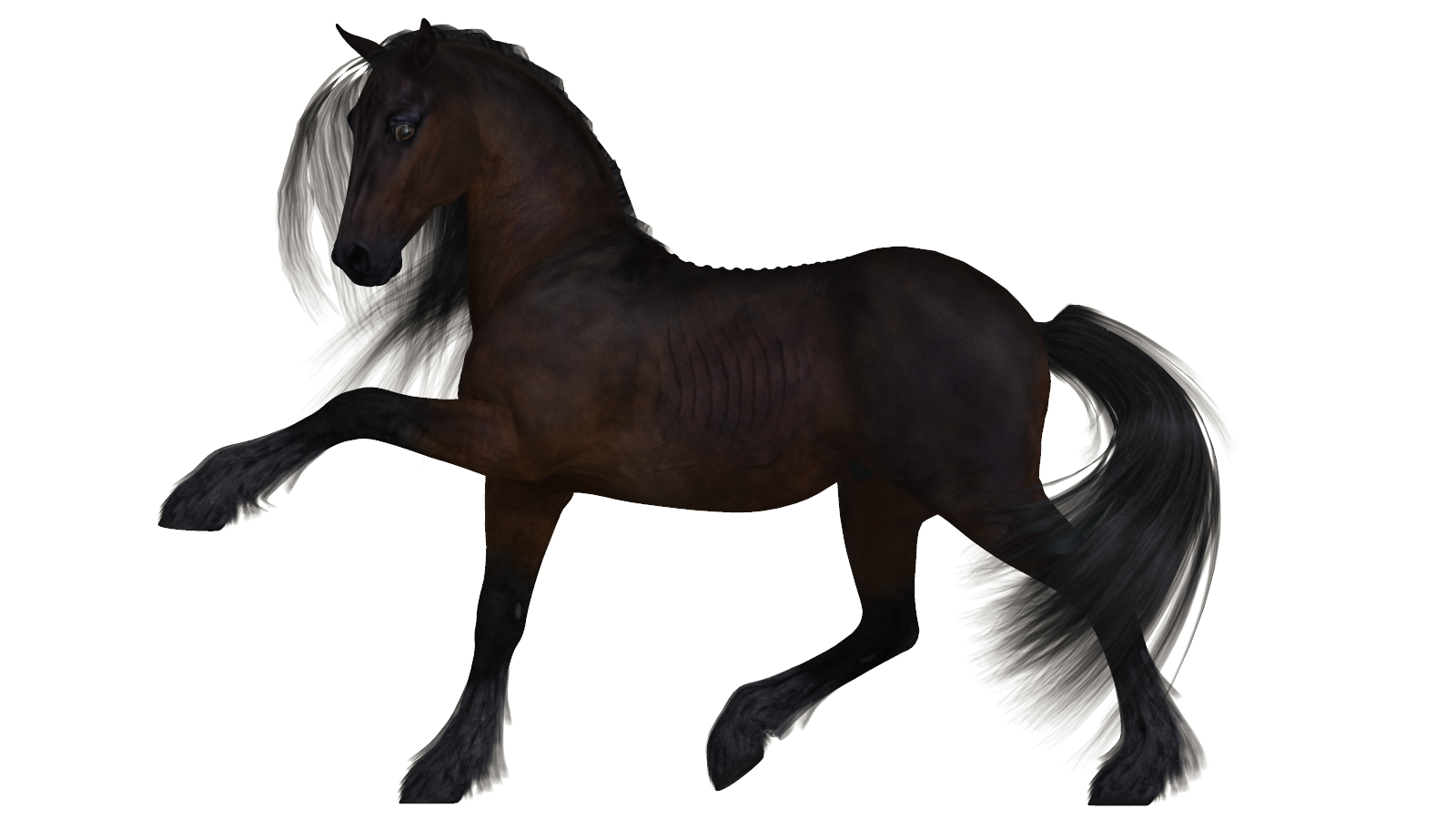 The transmaps I had to save out in Grayscale or go into the Surfaces Pane and click on the Thumbnail and select Image Editor and change the "Image Gamma" value from 0.00 to 1.00. Meaning DS will now treat the transmap as a grayscale image. See how the hair is now fuller. When changing the Image Gamma it will apply to that map no matter if on multiple horses. :)