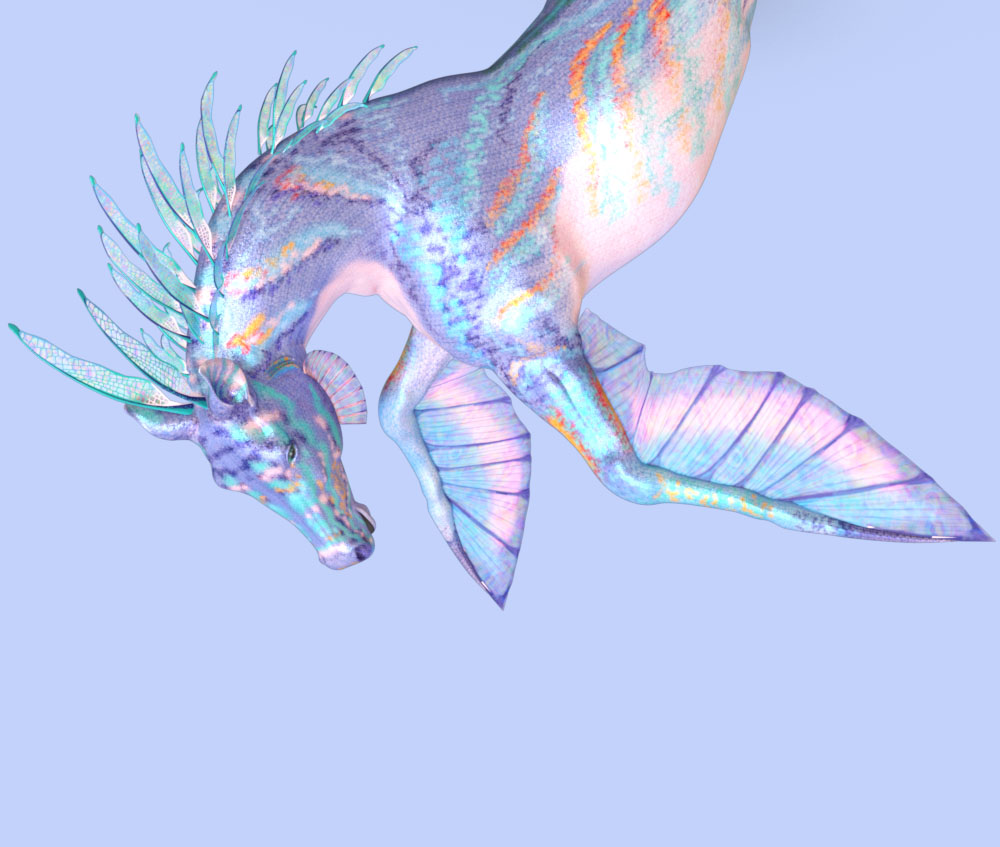 How about something of a more fantasy type horse! That could possibly be headed your way! This is not mine but created by FreyrStrongart and uses Harry as the base with geografted tail, fins, gills, and mane. I took him for a prelim spin and he's way cool!! Done with Fabiana's Theory of Zen lights.