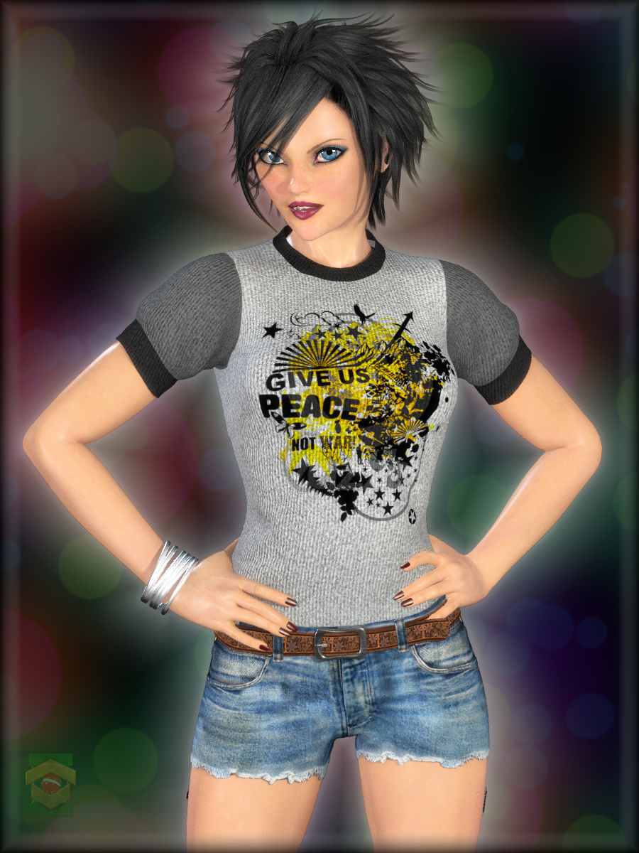 Made this t-shirt for Dawn last night in 3DSMAX + ZBrush, and CatsEyes wanted to try it first. Rendered in Poser with Superfly.^^