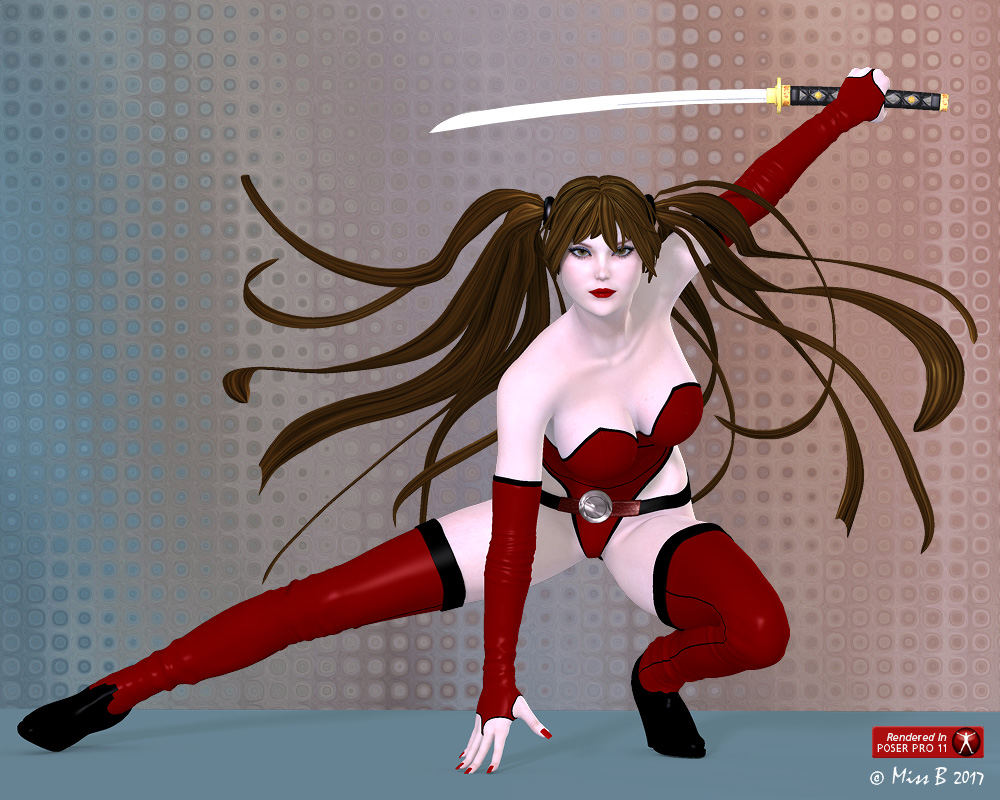 I like red a great deal but I guess, as I am normally portraying my character in some danger, red is maybe not the most appropriate, black and dark blue tend to be the order of the day. In the case of your render, red is spot on.