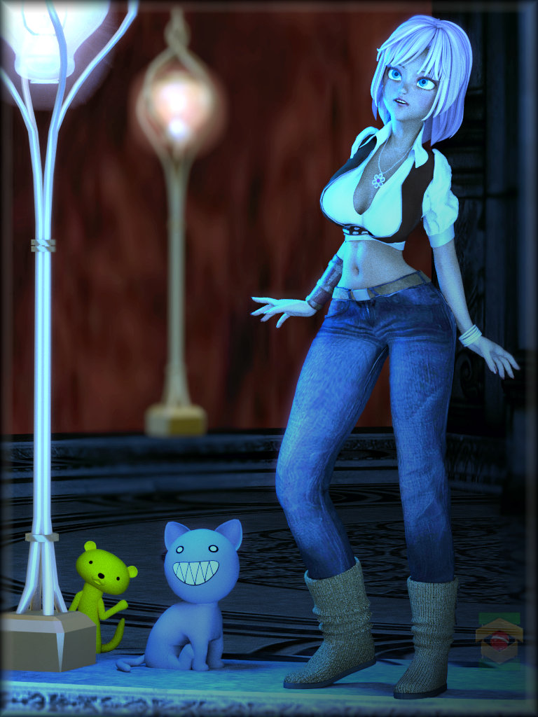 Kit bashing with some of the clothing I have modeled, plus some parts of Brunhilda for Dawn, which is already on the store. Figure is Dawn with an experimental character morph I have been working on with Volpe Box. Rendered in Poser with Superfly.