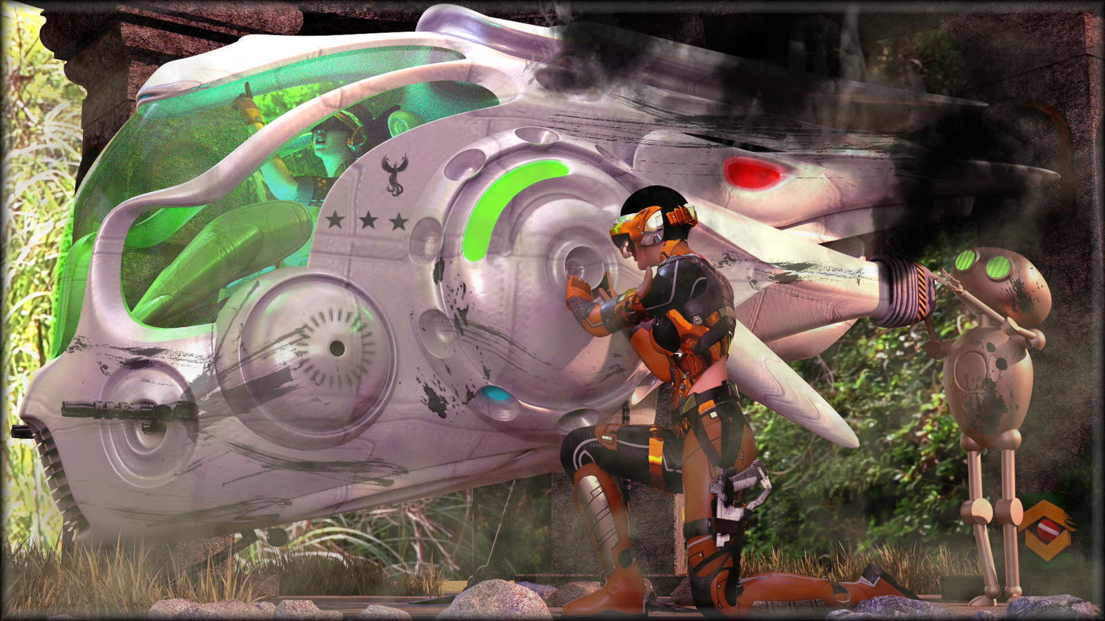 A little more than meets than eye with this render. Where is her giant monkey wrench and where does the robot sit?