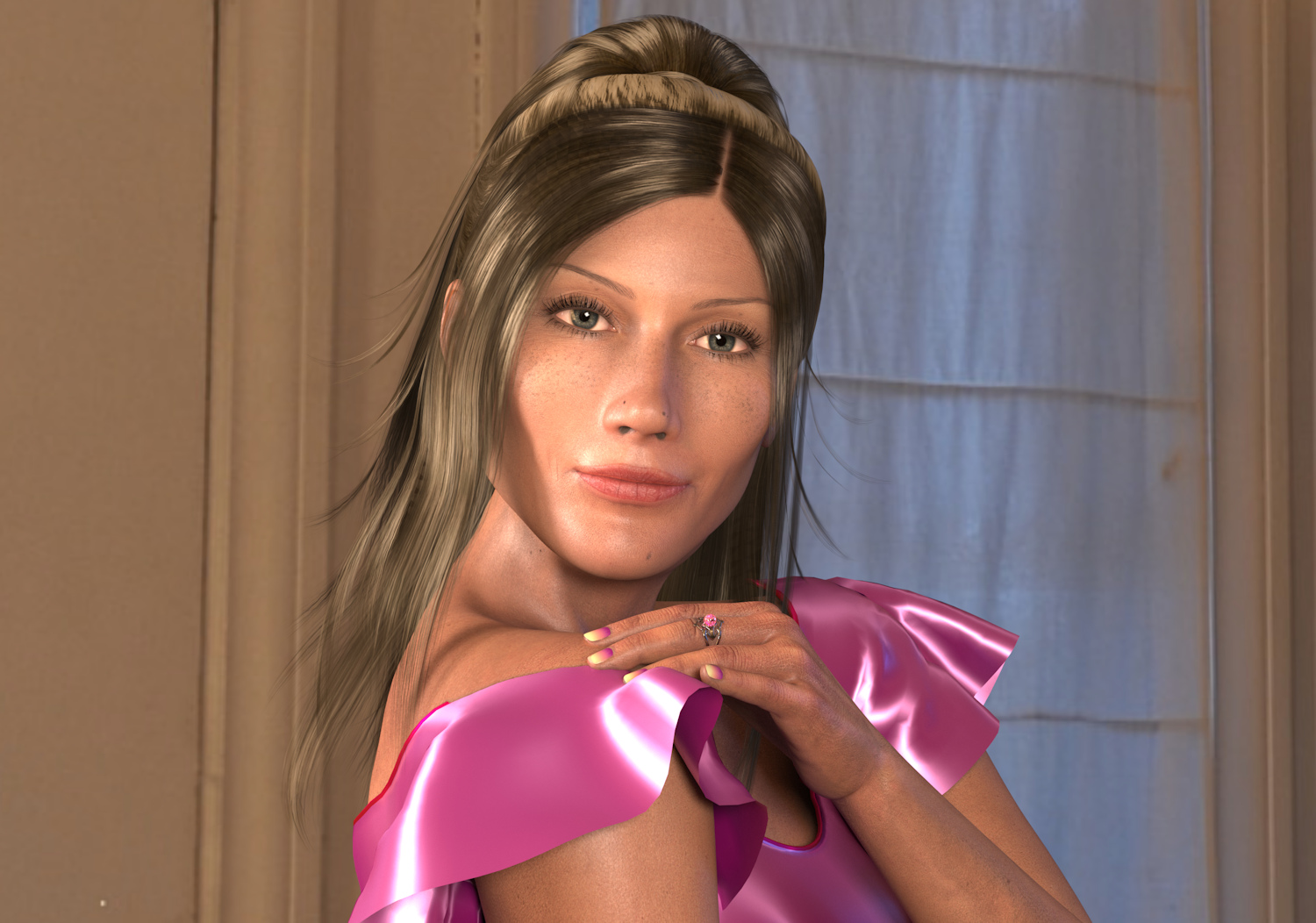 Got this dress and pumps from Rosity last night. The rest was kit-bashed from my other outfits Rendered in Poser with Superfly.