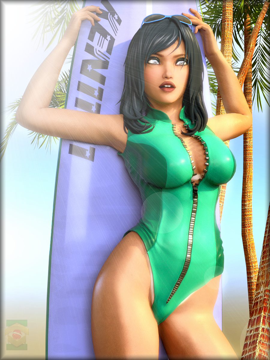 The render looks fantastic as does the body type morph. I also really like the material used for the skin. It's very beach goer. I hope for her sake that those are not sand spurs next to your stealth logo.