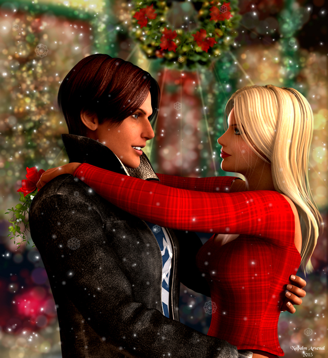 Just as the house door closed, she appeared from her hiding place on the eves without a coat and bearing nothing short of mistletoe tied with a red satin bow! ...........Oh man, he was Caught! He blushed from the cold or the impending excitement he wasn't sure, and smiled shyly and leaned into the kiss.