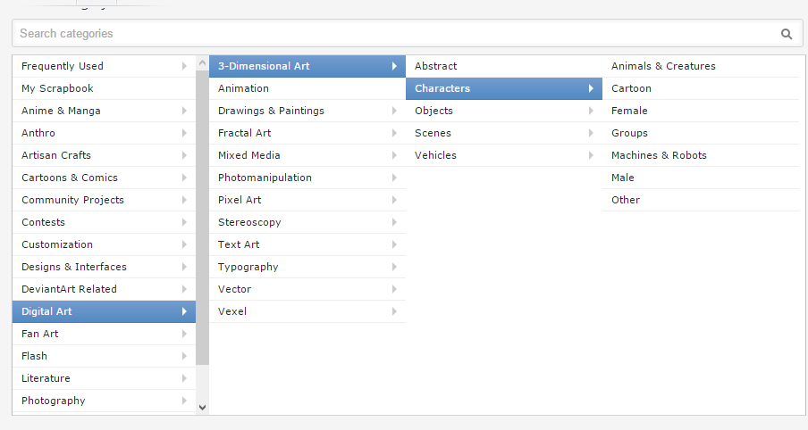 Now, I have the "favorites" showing, where it displays my most frequently submitted-to categories. But if you look further down the list, you can see where it says "Digital Art"...