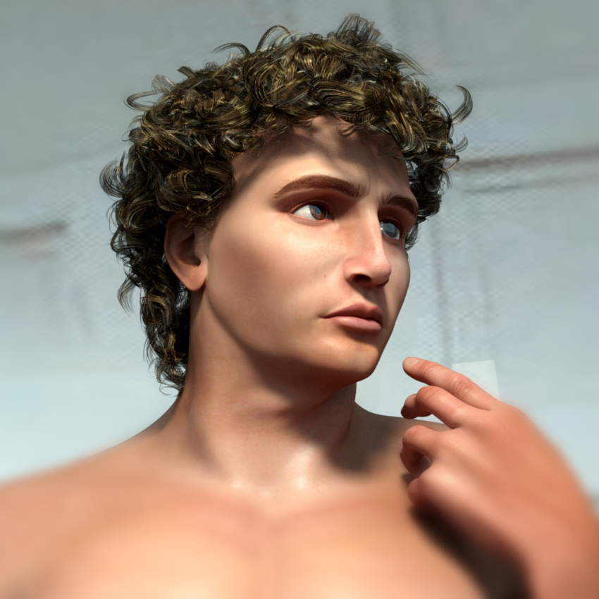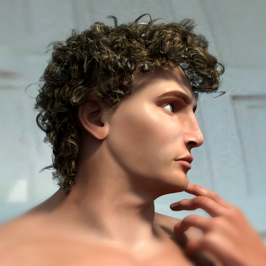 Awesome morphs. Is this going to be a new character for Dusk?Took a little break today to play. Made a David morph. Fitted Jonas Hair to Dusk and reshaped it to look a bit more like the statue. Used a mixture of my Bruno Muscular 01 and 02 to get the body shape. Got the pose about right too!