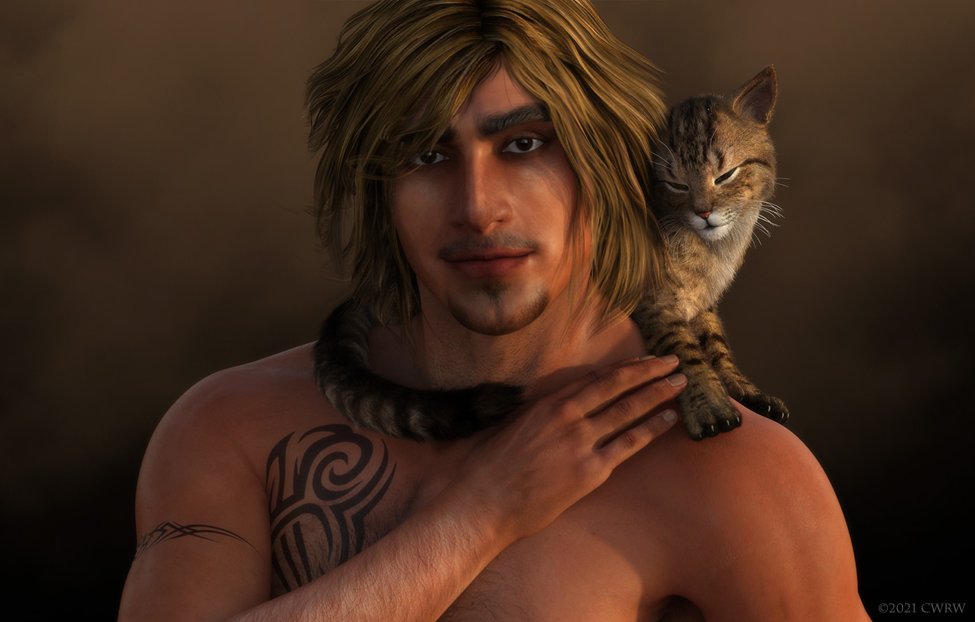 Thought I would dust off my Dusk character Rodrigo and mess with him in iray some for fun- actually this is a total simple Sun/Sky render. Poor guy was feeling abandoned by meI DID give him a cuddly kitty to keep him company