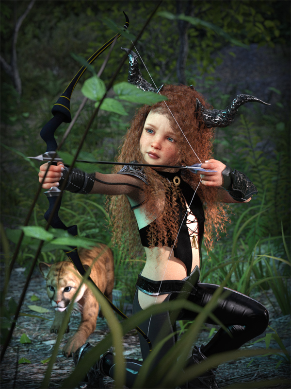 Products Used: HiveWire Big cat, CWRW's Black Panther coat textures for the HiveWire Big Cat, Kadis Armor, and texture expansion set, Macarena HD for Genesis 8, Feather Hair, BG is a conglomerate of several different BGs combined.