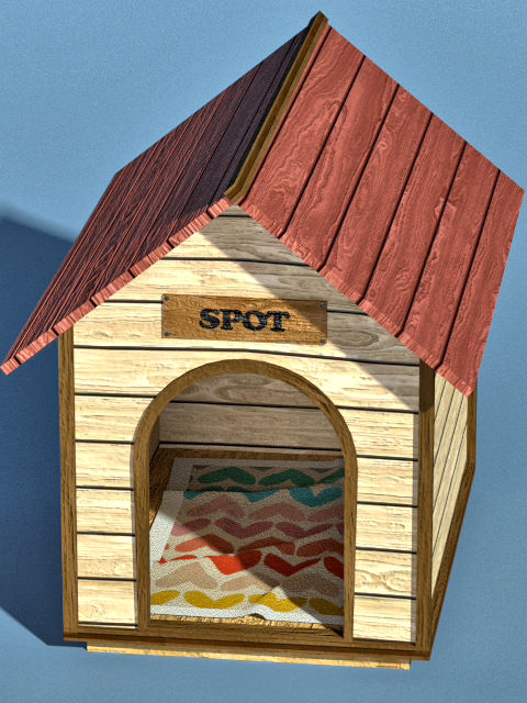 Added a rug/blanket to the dog house. It's warmer and more comfy in there now. It's loaded separately as a SmartProp. :)