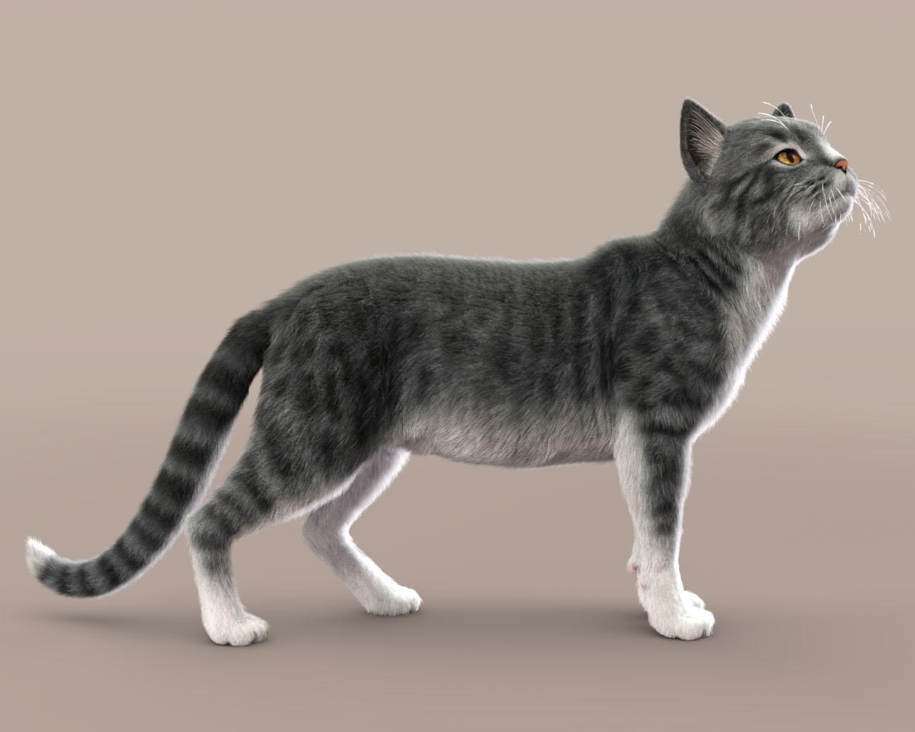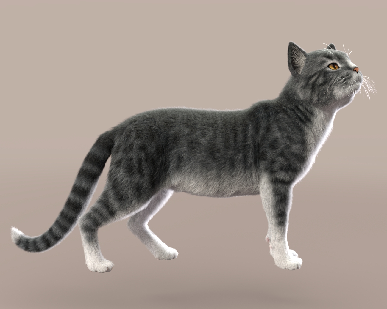 Just for fun? WIP LAMH fur for the Hivewire Housecat, rendered in Iray. Not sure what I'm going to do with it yet. The fur thickness is 80-30 here, but 50-10 looks good for close-ups. The combined fur amount was less than 1500,000 fibersOuch. (Edit: Kitty is floating in this render. Whoops!