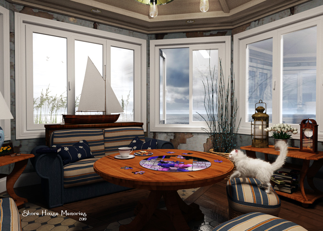 Very nicely done! Love your decor and your sweet kitty!Continuing my vacation memories...this time with the kitty. Also used some of Lisa's plants and Ken's gulls.View attachment 47623