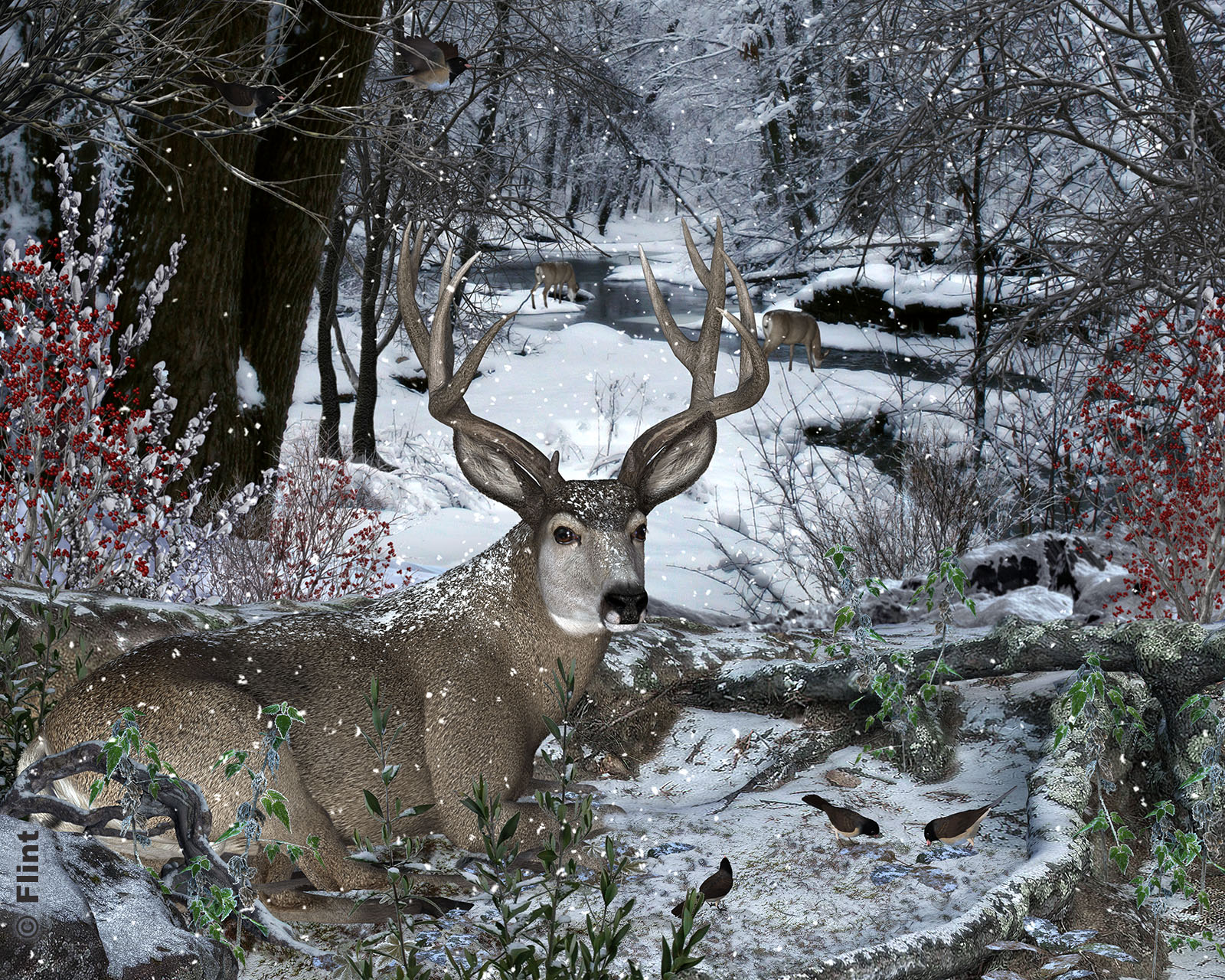 I couldn't resist using the Mule Deer texture with snow!