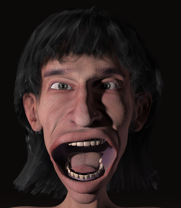 All right! There's the mouth again...haha. How in the world you got it that big without having mesh issues...amazing! See, it's all in the dials, and which ones to move first :)