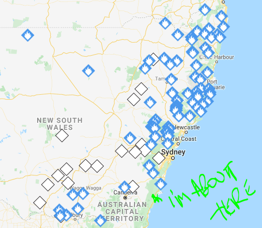 nope.. all the smoke from the bushfires north of me are getting blown down here by the NE'ers .. there's a lot of it. :confused: