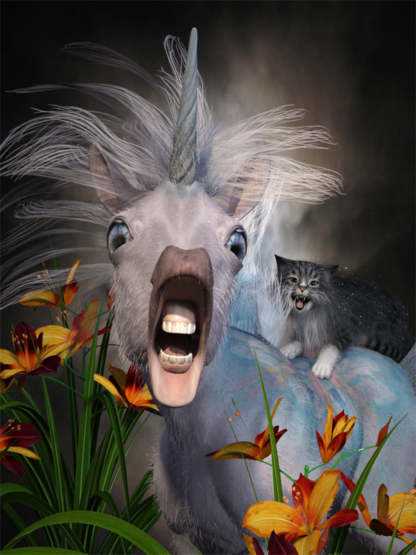 I made a texture to match Penelope's unique coat from three textures in the CWRW Black, White & Tuxedos set. In addition to the Gogmagog scene, the Black-eyed Susans and the House Cat, the image includes JTrout's Chipmunk.