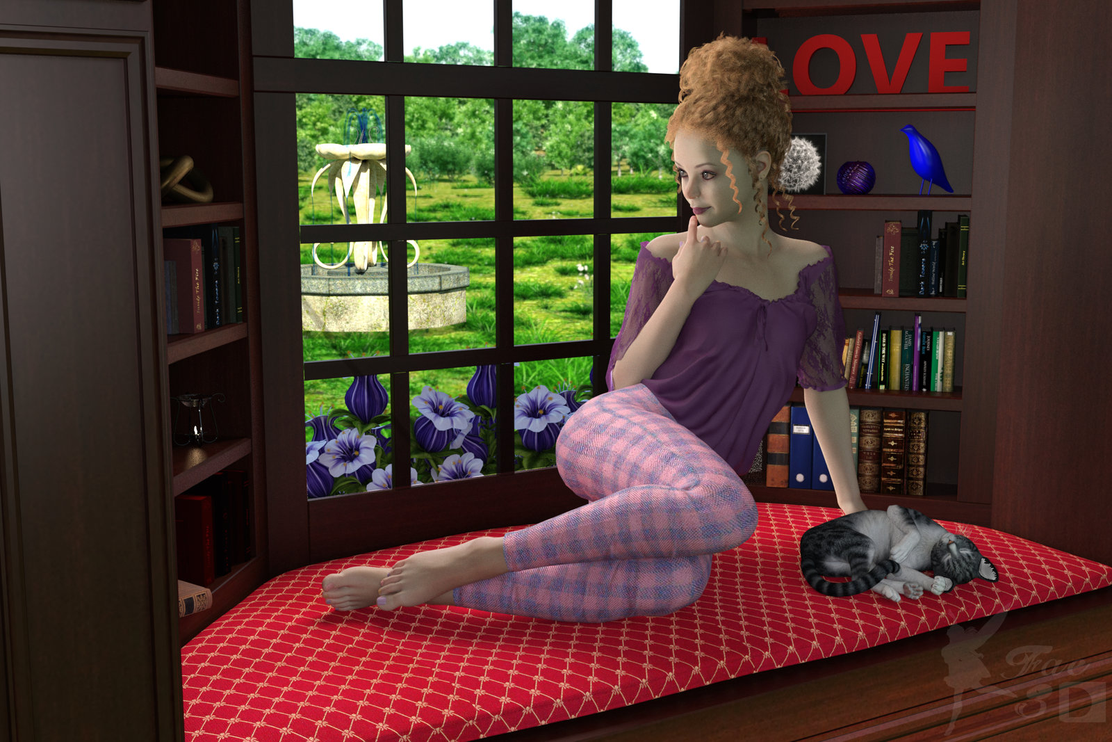 This was a fun little project Chris and I worked on together. I found a photo of a really cool gazebo, sent it to Chris, and he not only modeled it but added some unique and special features. I made the textures and set it all up in DS and Poser.