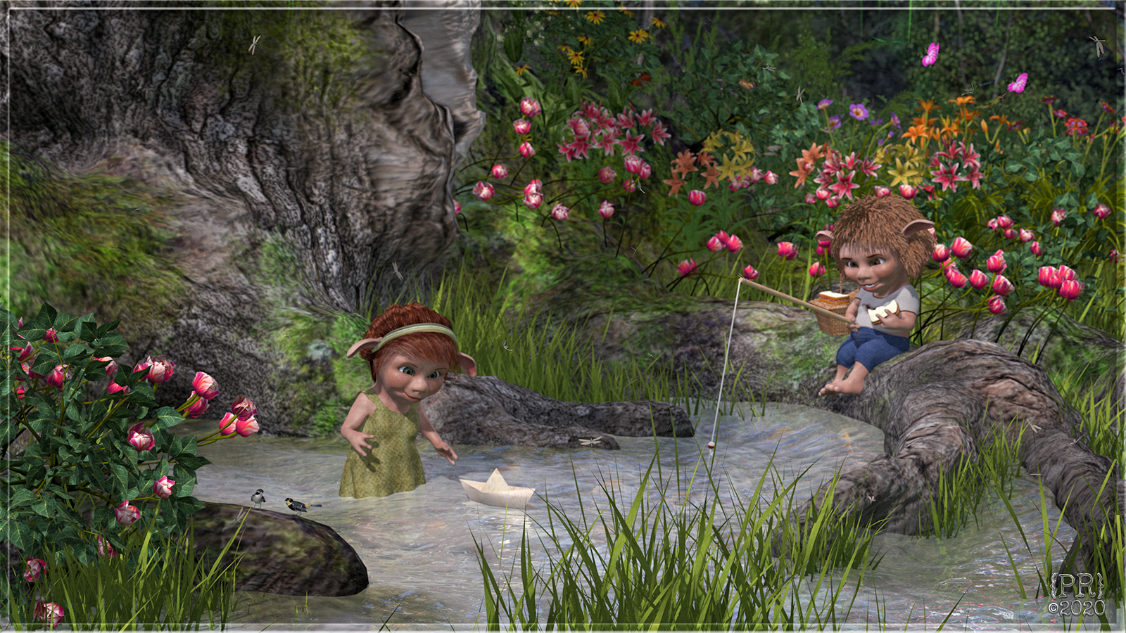 SCENE CREDITS: Fairie Pond Set by Sixus1; Daylilies*, Asiatic Lillies*, Black-Eyed Susans*, and Indian Grass by Lisa’s Botanicals; Flutter of Butterflies by ShaaraMuse; RDNA Scatters Vol 3 - Dragonflies; Fishing Pole by France; Sandwich by Pokeydots (modified by me); Paper boat by me.