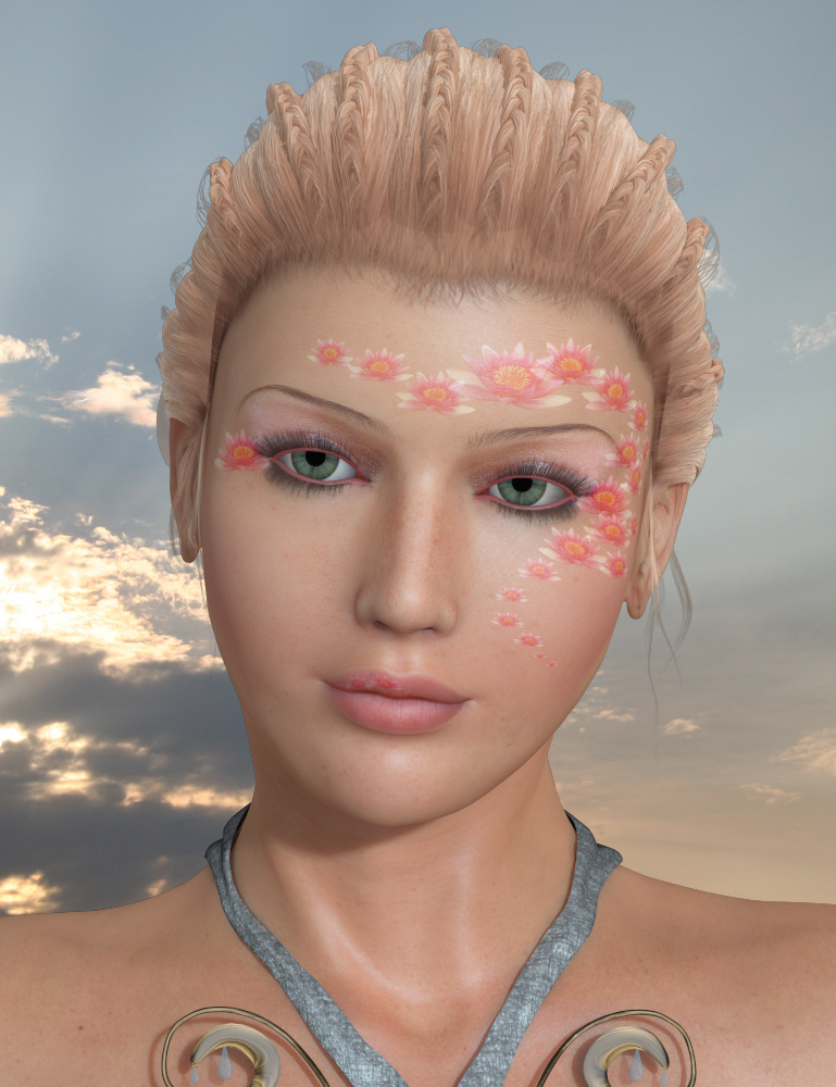 TinselAngel was supposed to be a fantasy char with normal skin and normal make ups but also with a golden glittering skin and ornamented make ups. So... as I was not really content with her make ups and eyes I reworked these and gave her also more options (not only a golden, but also a silver and kind of greenish skin)